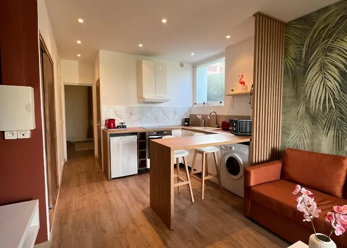 Situado no distrito de Giens Peninsula em Hyères, o apartamento L'Echappee Bleue Apartamento fica a 10 km do aeroporto de em Toulon. Esta unidade é composta por 1 quartos, 1 casas de banho e cozinha equipada.